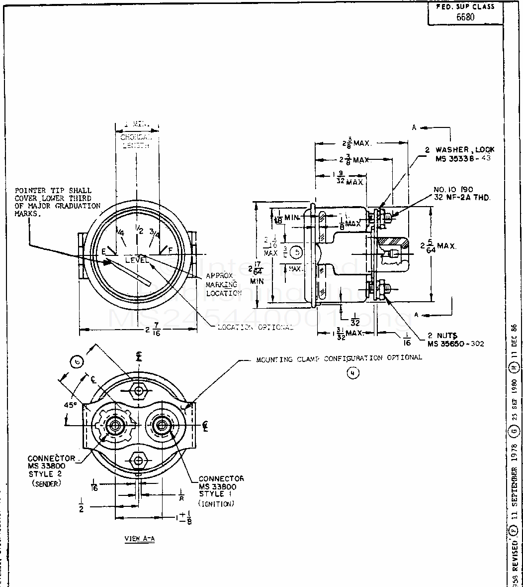MS24544 Indicator, Liquid Quantity: 24 Volt Dc, Engine Fuel